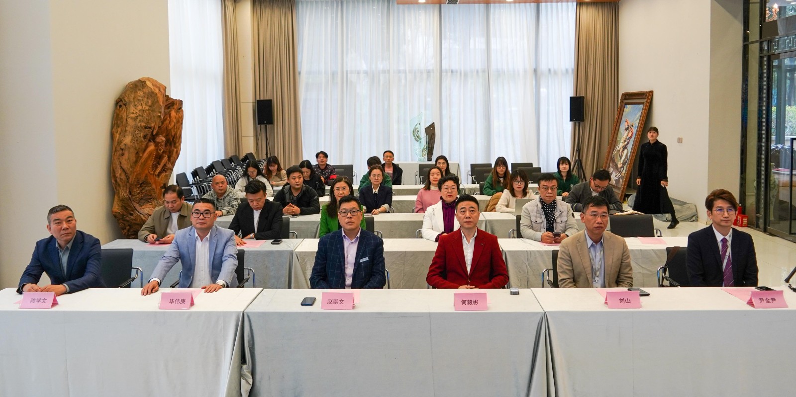 国家人类基因组联合实验室主任、诺赛国际医学研究院院长赵崇文,北京中健卫生物集团董事长毕伟庚、湖北文兰投资集团董事长陈学文,雅蘭国际集团总裁何毅彬、集团副总裁兼事业部总经理刘山、集团研产事业部研发中心主任兼总工尹全尹以及集团总部职能部门和品牌公司负责人等出席本次仪式。仪式由集团人力资源总监兼媒介总监苏朝晖主持。