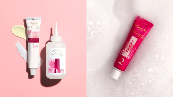 ▲染发剂推荐巴黎莱雅优媚霜三重护发染发霜,除了升级染剂(图左),成分可加强保护发质;还是市面唯一附上染后护色洗发精(右)的开架染发剂。
