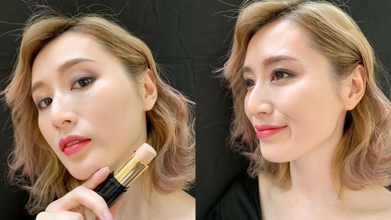 YSL粉底棒试色。