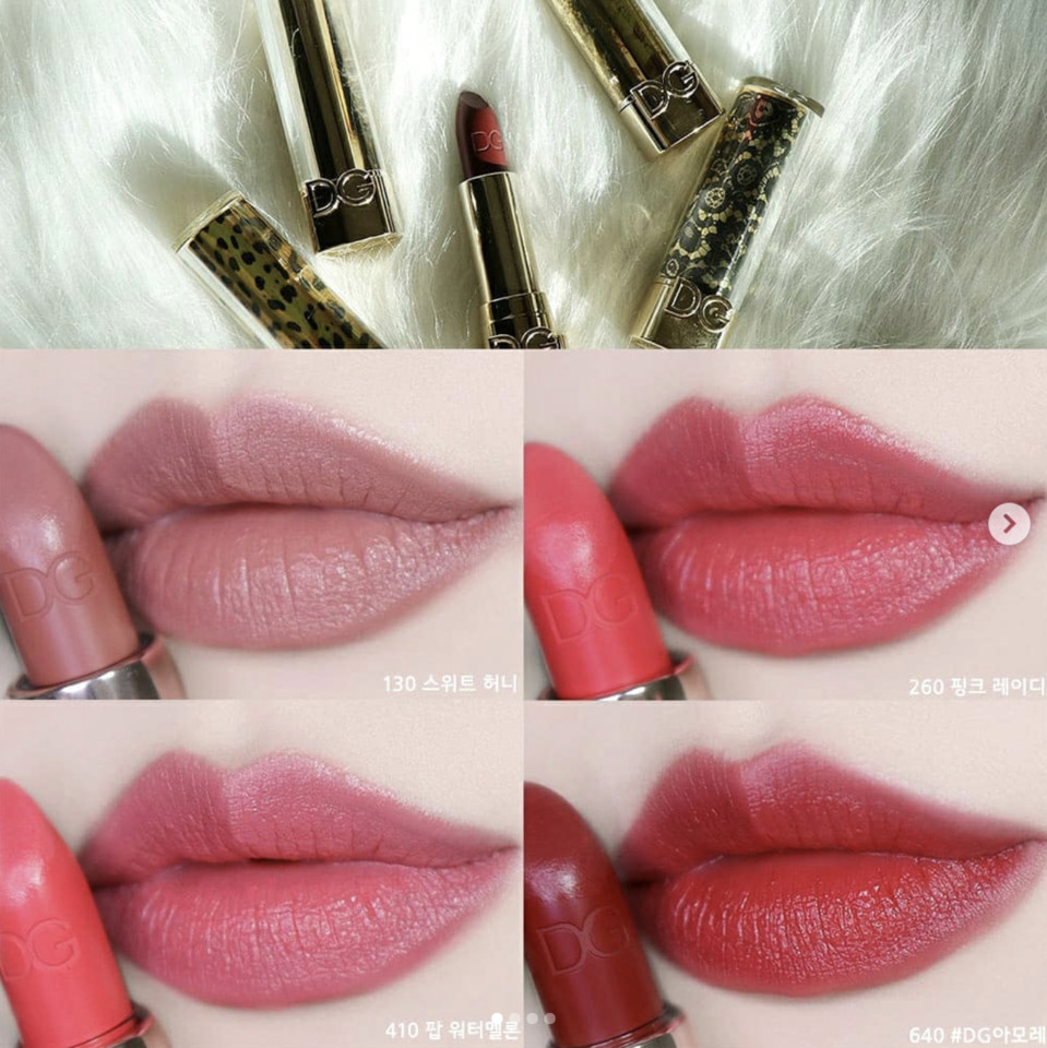 除了雅诗兰黛这支唇釉,想要找寻跟子瑜类似的唇膏色,DOLCE & GABBANA旗下有一款唇膏的颜色也非常类似,就是#130号,同样是带有一点紫色调的粉红色,擦起来自然却又不会无聊,是非常适合亚洲女孩的单品。
