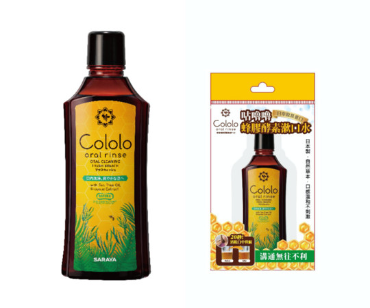 日本SARAYA咕噜噜蜂胶酵素漱口水,600ml,NT$450;随身包,7ml X 12