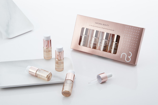 双剂型设计的“肌因极光白亮纯度酯C安瓶”内含新型α熊果素及双重维他命C复合亮白配方,能速效双修护,淡化已生成的黑色素,且不具感光性,即使白天也能使用。