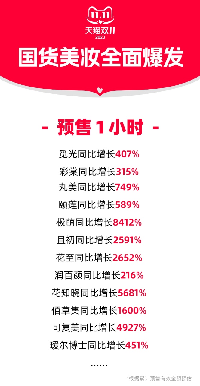 国货美妆在天猫双11迎来集中爆发!超20个国货品牌预售1小时超去年全天